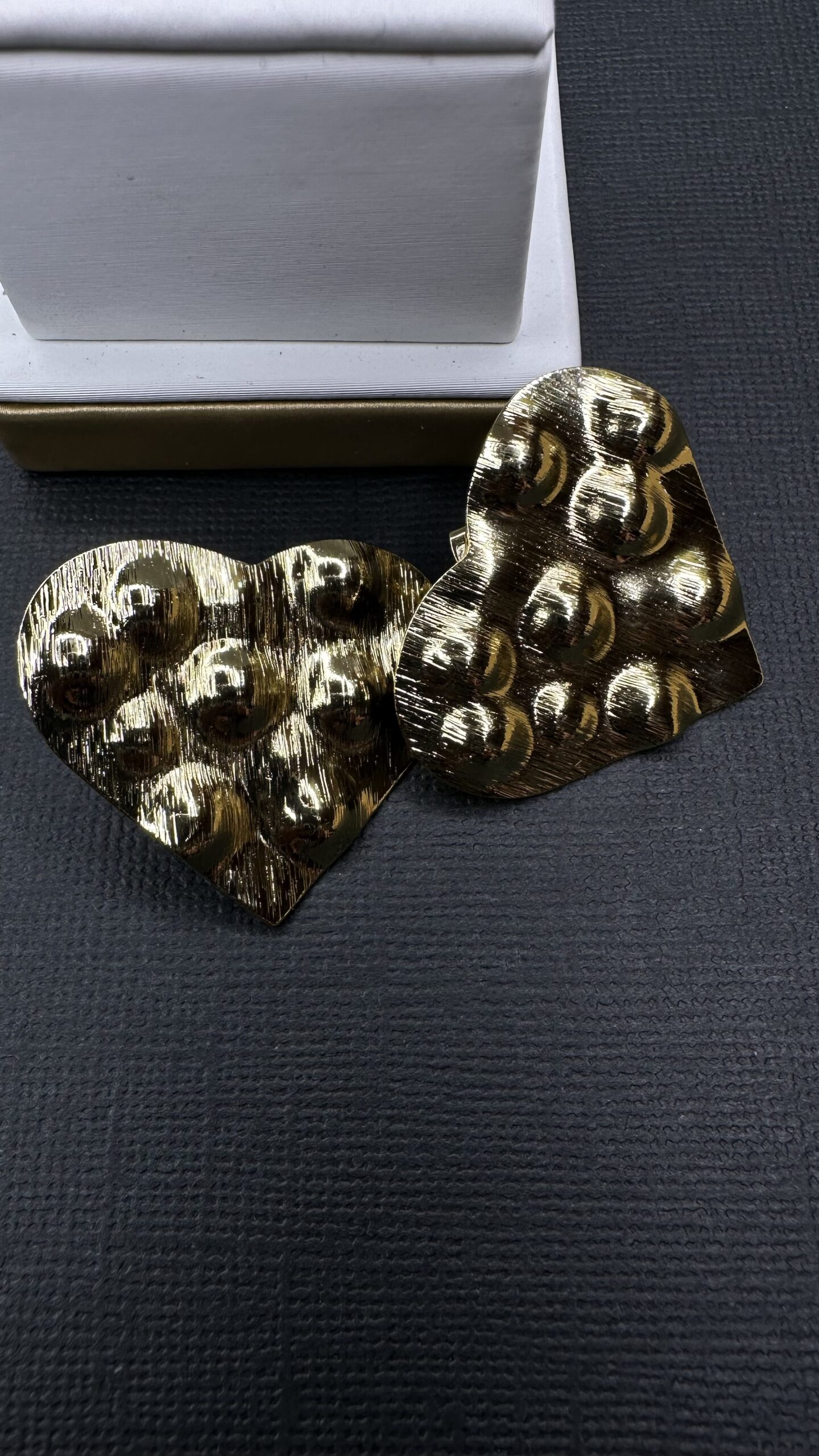 Aros corazón con relieves baño de oro 24 kilates.