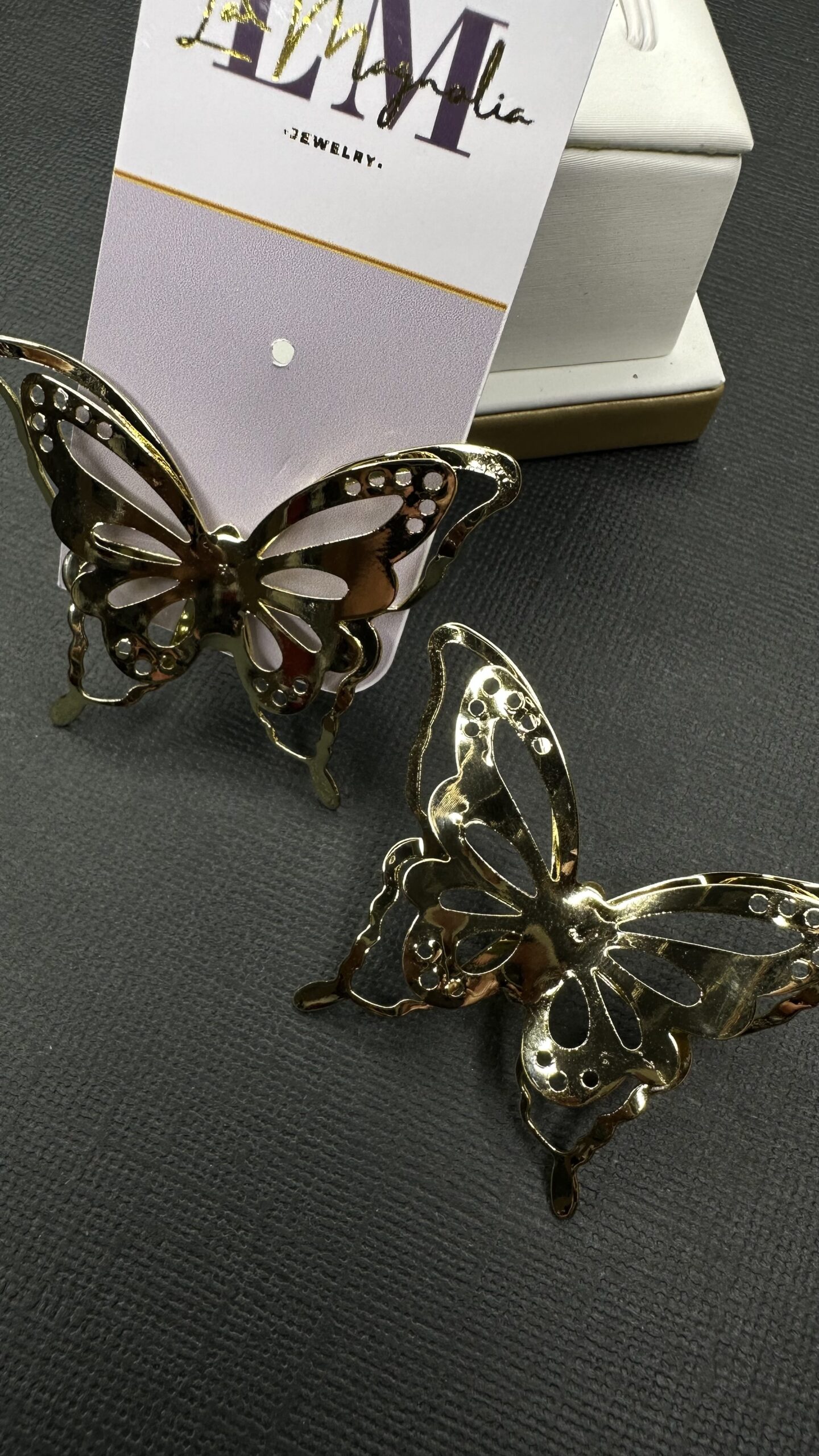 Aros mariposa en relieve. Calado en sus alas. Baño de oro 24 kilates.