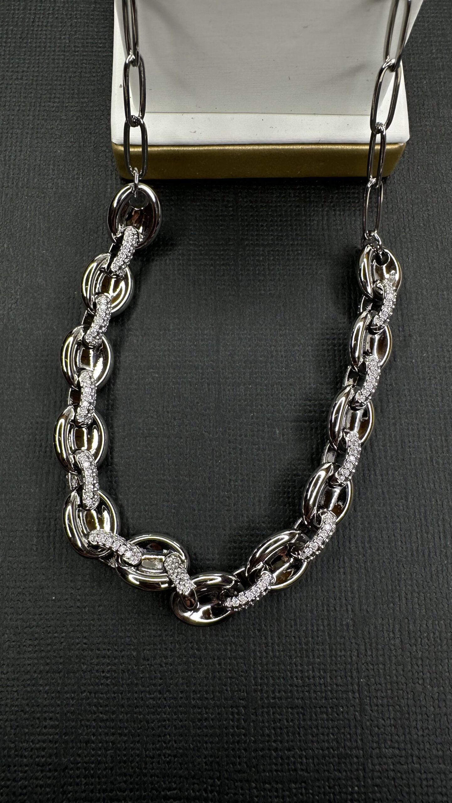Collar modelo Gucci o grano de café. Baño de oro blanco de 24 kilates